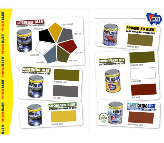 El ANTICORROSIVO BLER® es un imprimante con vehículo alquídico Tipo 1 de uso interior y exterior, con pigmentos inhibidores de corrosión y aditivos especiales que se emplea como primera capa para proteger todas las superficies de metal expuestas a condiciones atmosféricas medianamente agresivas o expuestas a la intemperie. El ANTICORROSIVO BLER® es el más vendido de Colombia y el preferido por los que saben de protección.